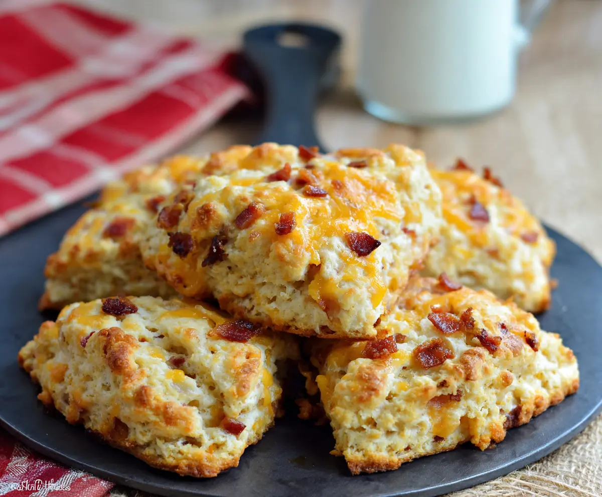 Honestly, who wouldn’t love bacon in a scone? I like to enjoy them warm with a little butter. Give these a try at breakfast or snack time; they’ll definitely steal the show!