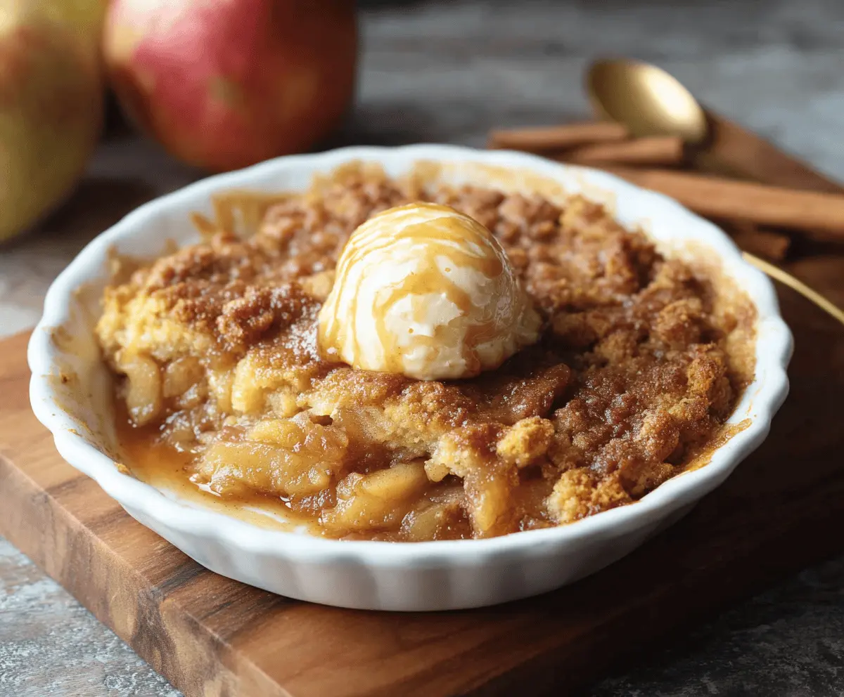 Enjoy your comforting homemade apple cobbler with creamy vanilla ice cream on top! It’s perfect for any occasion.