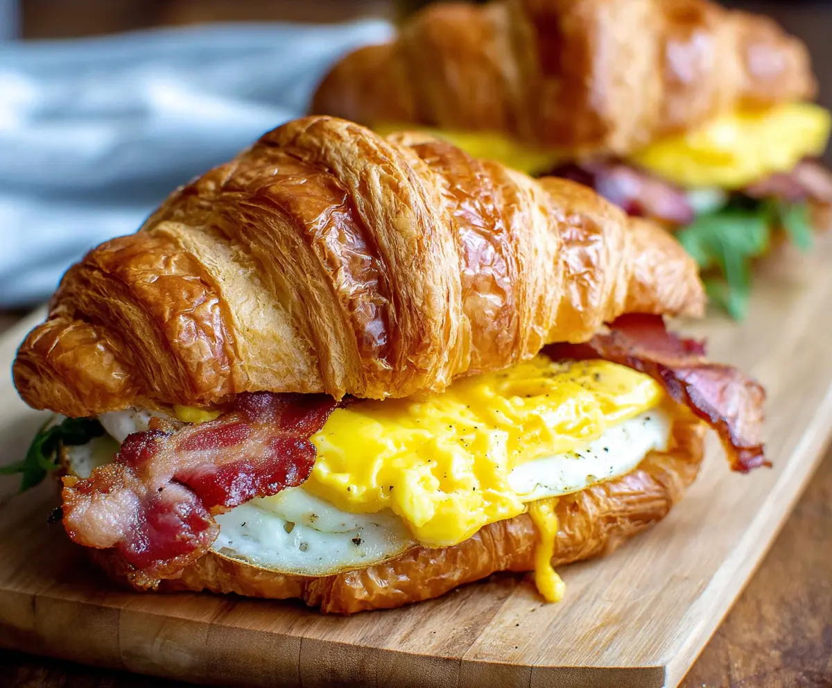 Enjoy your homemade Bacon Egg Croissant Sandwich, a perfect start to your day!
