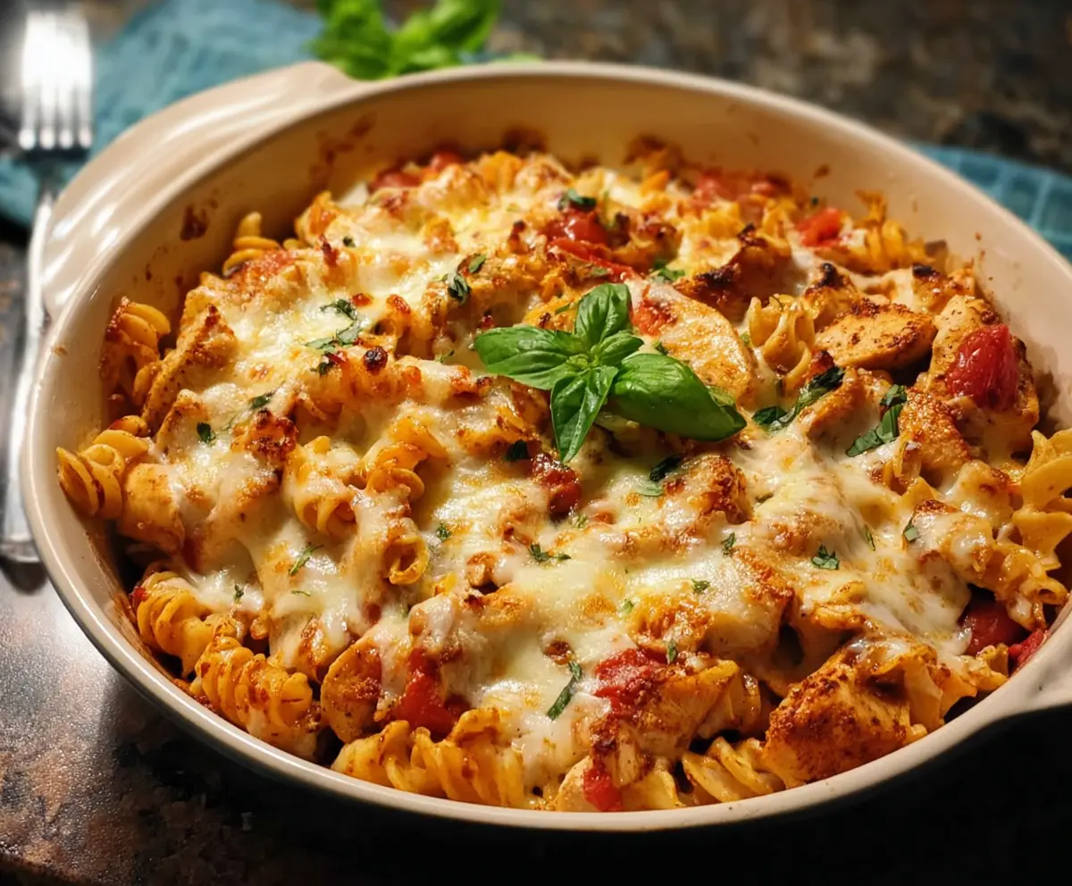 This Baked Chicken Mozzarella Pasta is a cozy dish filled with tender chicken, pasta, and gooey mozzarella. It’s baked to golden perfection and is sure to warm your heart!