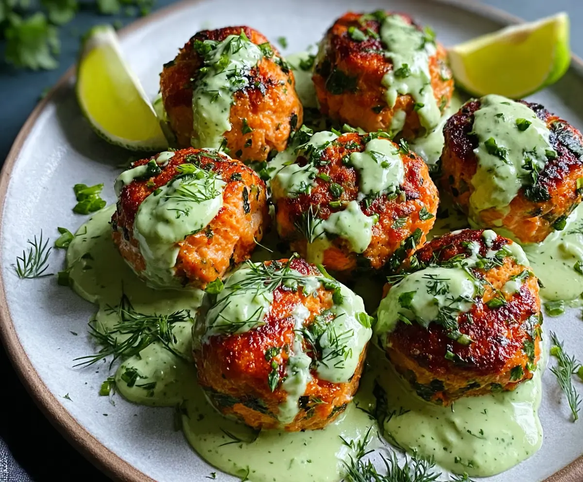 Baked Salmon Meatballs With A Tangy Avocado Sauce