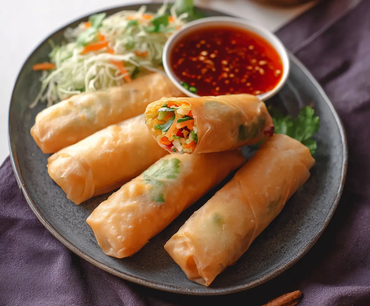 Plate your hot, crispy spring rolls with the Bang Bang sauce on the side for dipping. Enjoy the crunchy texture paired with the vibrant vegetables and the sweet-spicy sauce. You’ve just created a delightful dish!