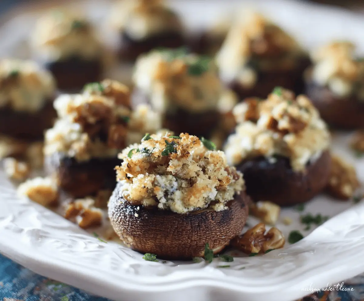 These tasty stuffed mushrooms are filled with creamy blue cheese and crunchy walnuts, making them a perfect bite-sized treat. They’re deliciously cheesy and packed with flavor!