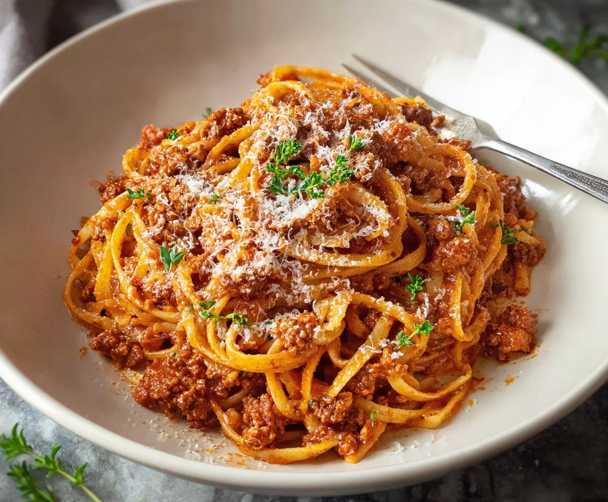 Your Bolognese pasta is ready to serve! Enjoy it warm, perhaps with a side of garlic bread. It’s a perfect meal for sharing with family or friends!