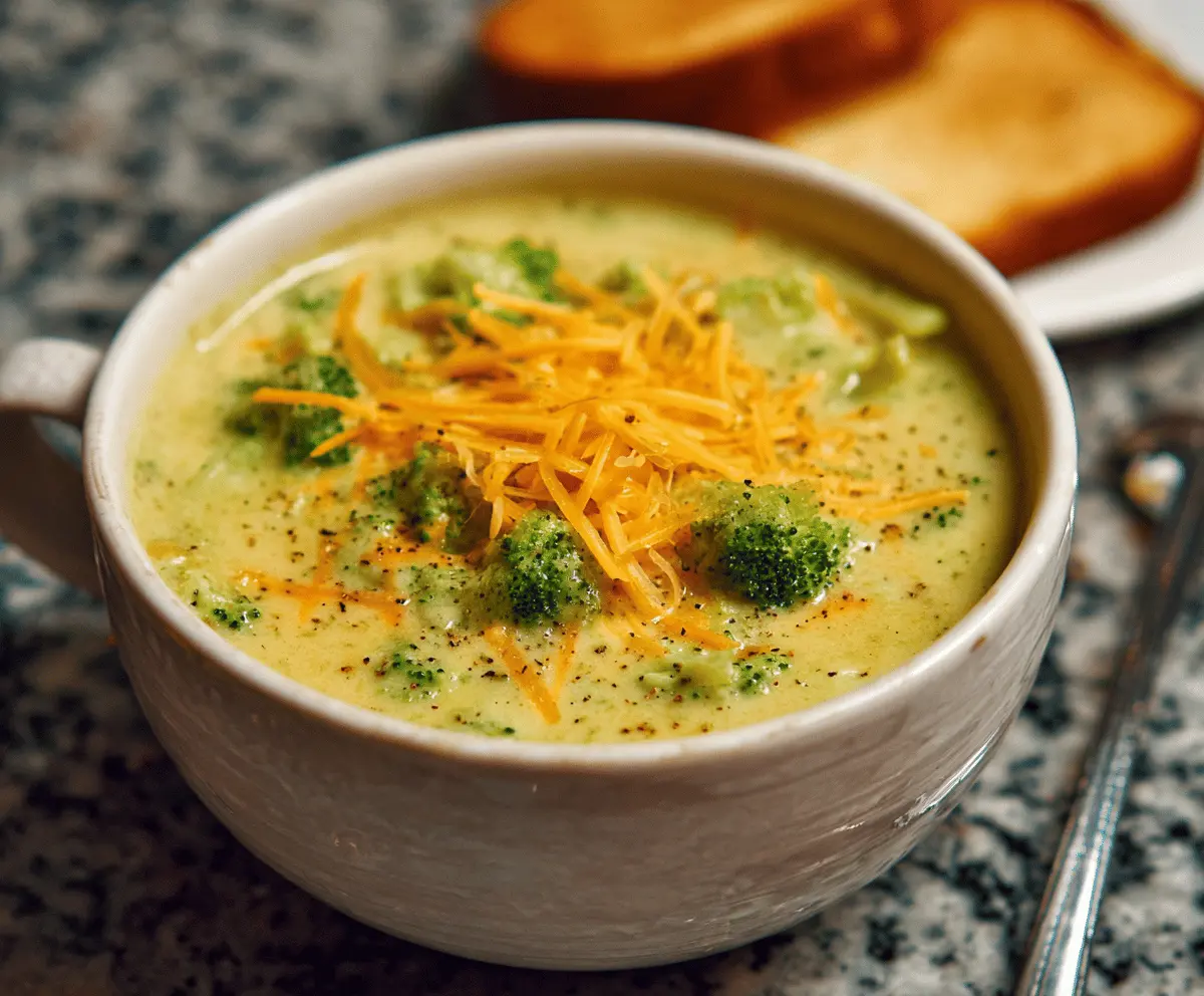 Serve the soup hot, garnished with extra shredded cheddar on top. Pair it with some crusty bread for dipping and enjoy your delicious Broccoli Cheddar Soup!
