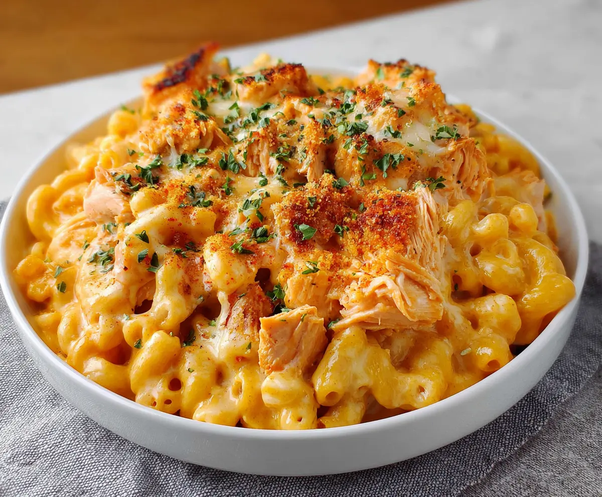 This Buffalo Chicken Mac and Cheese is a cozy dish that combines creamy pasta with a spicy kick! Picture tender chicken mixed with cheesy goodness and a hint of buffalo sauce.