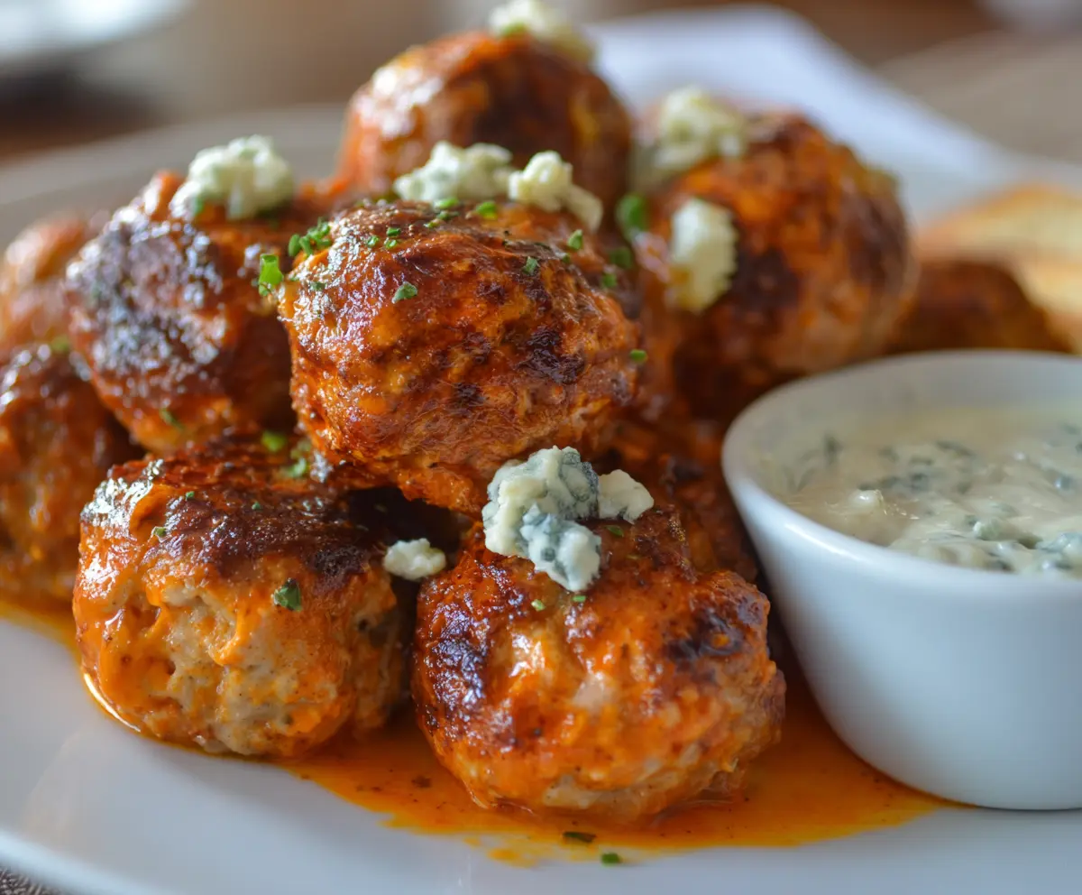 Buffalo Chicken Meatballs With Bleu Cheese Dip