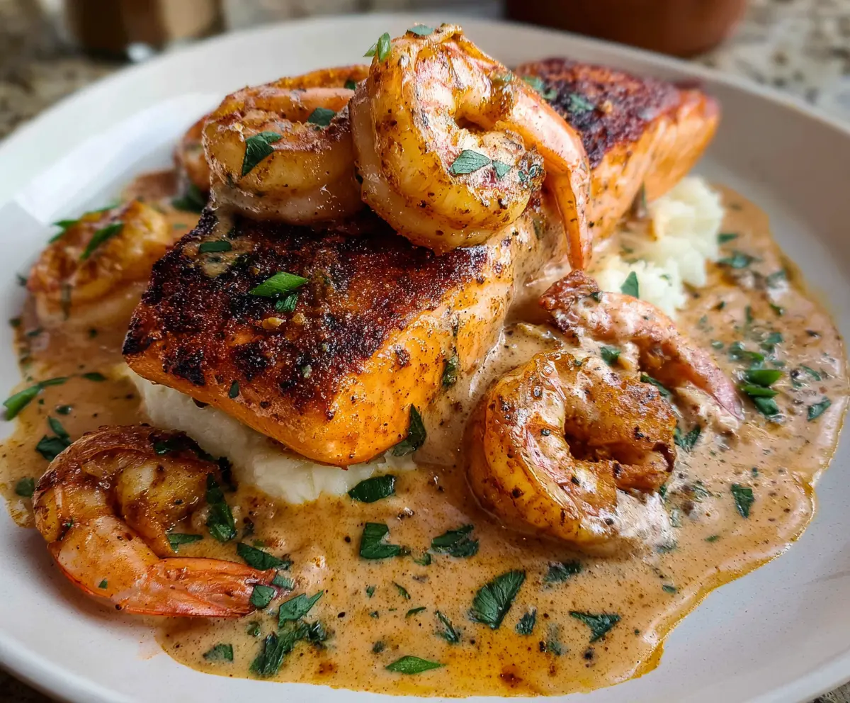 Enjoy this flavorful, creamy Cajun Salmon and Shrimp dish that’s perfect for an impressive yet easy dinner!