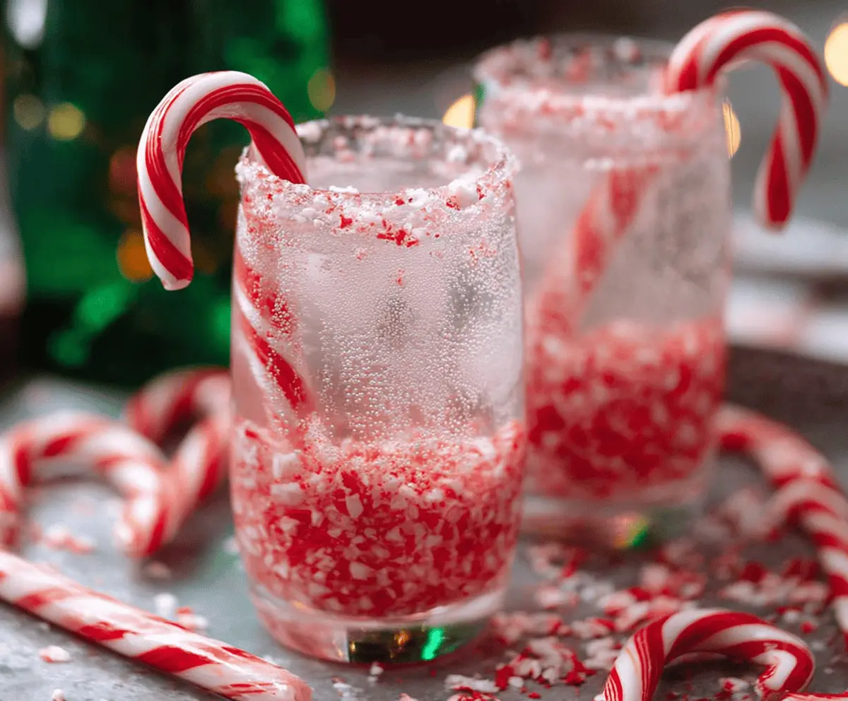 Take each serving glass and add about 1 tablespoon of the crushed candy canes to the bottom. This will give your drink a festive look and a delightful minty flavor with every sip!