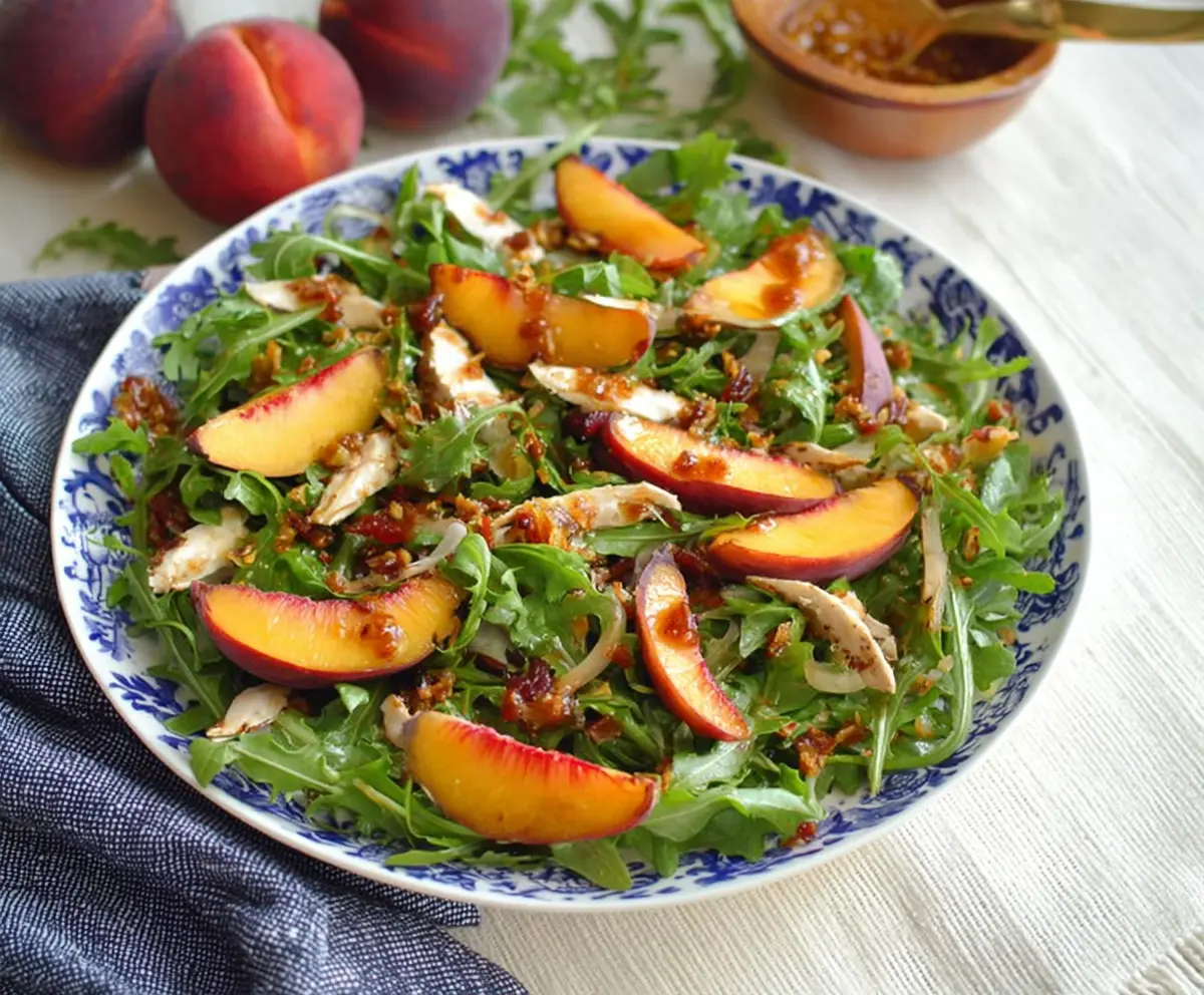If peaches aren’t in season or you prefer something different, try using ripe nectarines, plums, or even sliced strawberries for a fruity twist in your salad.