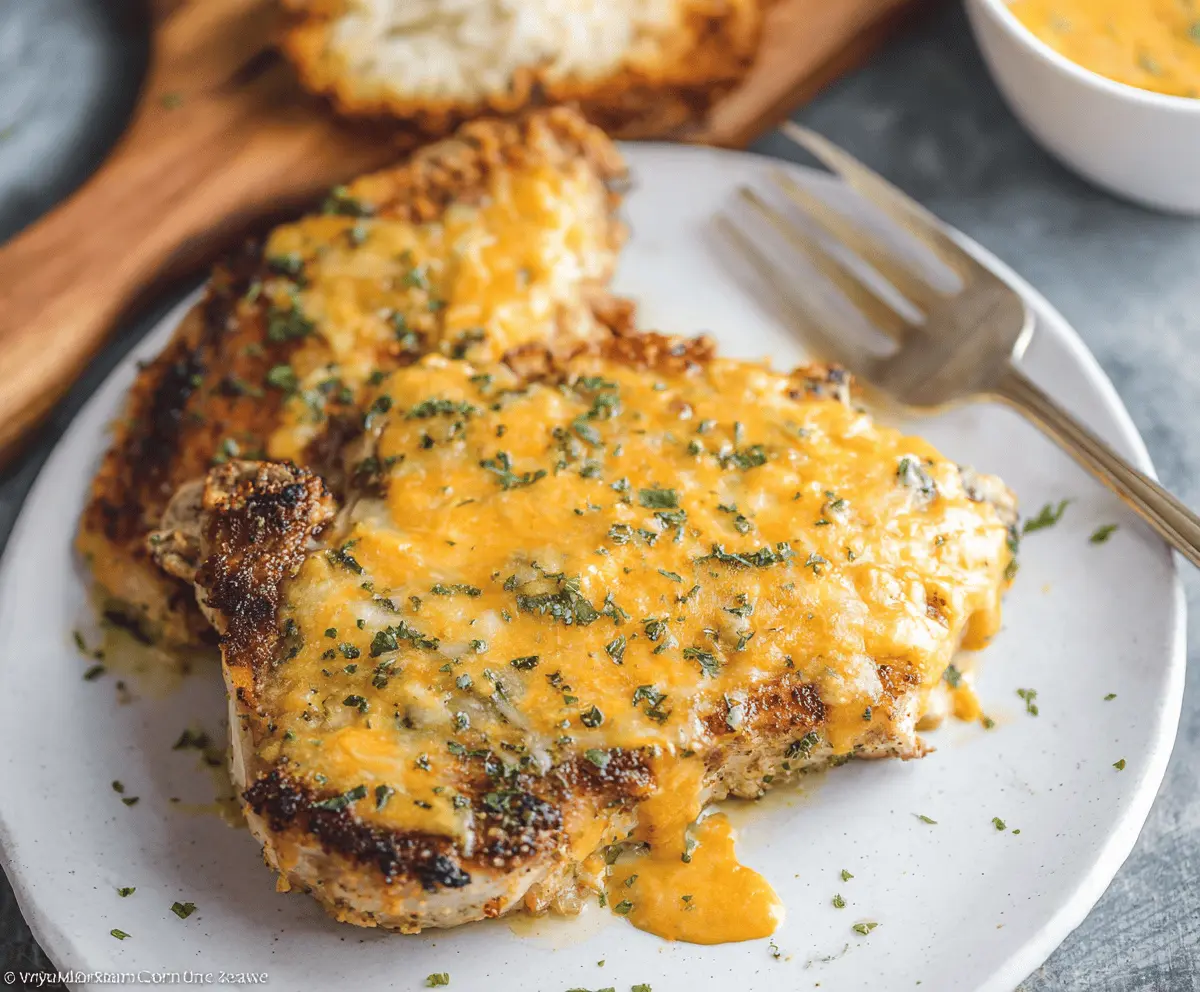 These Cheddar Ranch Pork Chops are juicy and packed with flavor! Coated in a tasty mix of ranch seasoning and cheddar cheese, they’re perfect for a family dinner.