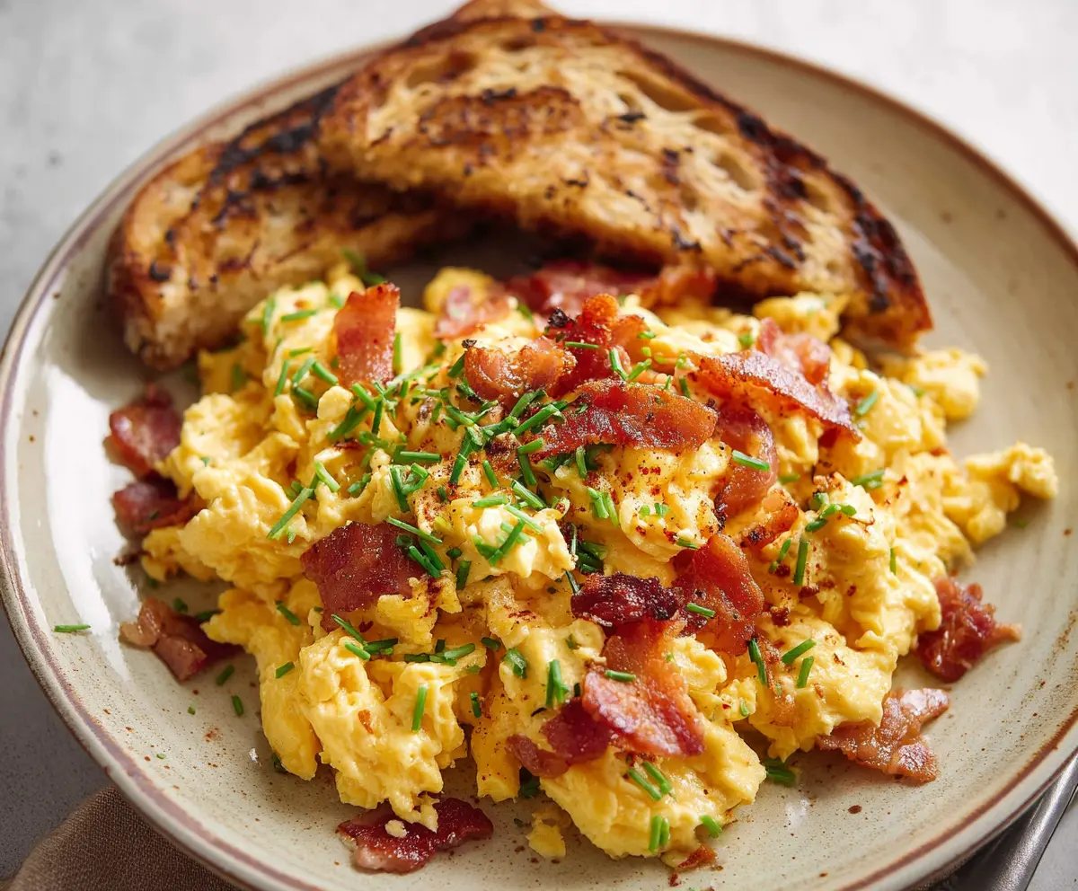 These cheesy scrambled eggs with crispy bacon are a breakfast dream! They’re fluffy, packed with flavor, and super easy to whip up in just a few minutes.