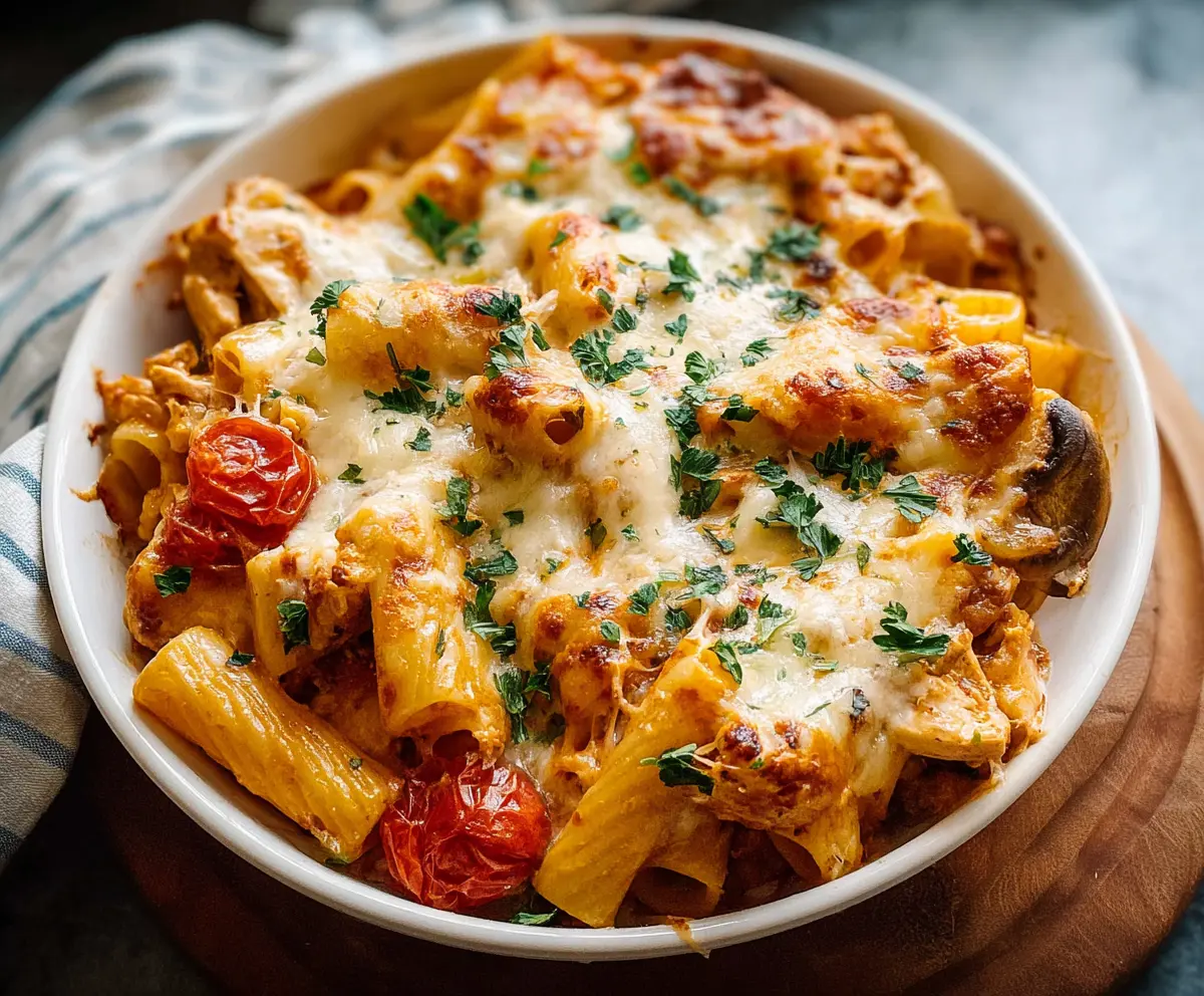 This Chicken Rigatoni Pasta Bake is a warm and comforting dish. It’s packed with tender chicken, cheesy goodness, and a rich tomato sauce that will make your taste buds dance!