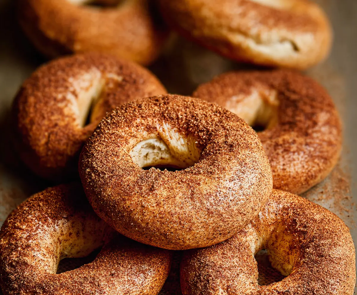 These Cinnamon Bagels are a warm and tasty treat that’s perfect for breakfast or a snack! They are soft, chewy, and covered in sweet cinnamon sugar, making them hard to resist!