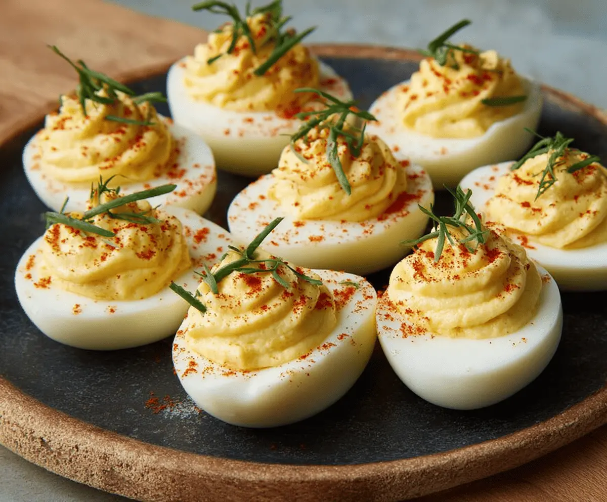 Enjoy your classic deviled eggs—creamy, tangy, with just a hint of spice and fresh herbs! They’re sure to be a hit!