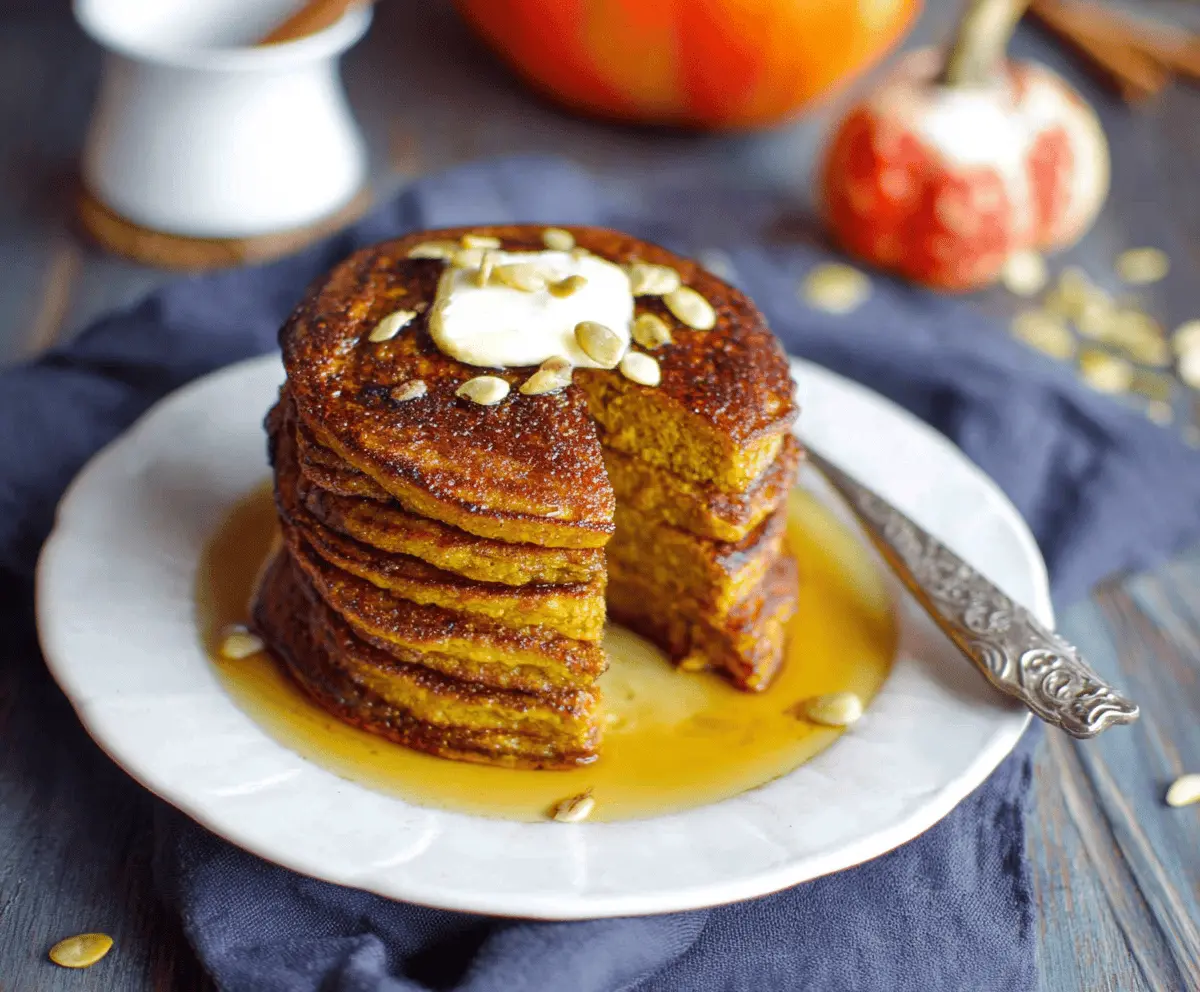 Enjoy your warm, fluffy Coconut Flour Pumpkin Pancakes—the perfect fall breakfast treat!