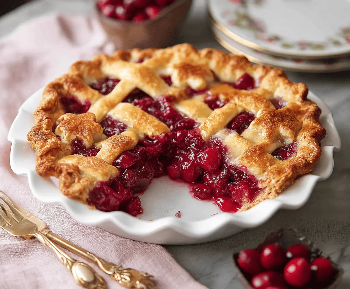 This cranberry pie brings a burst of fruity flavor with its sweet and tart filling, all nestled in a flaky crust. Perfect for any celebration or just because!