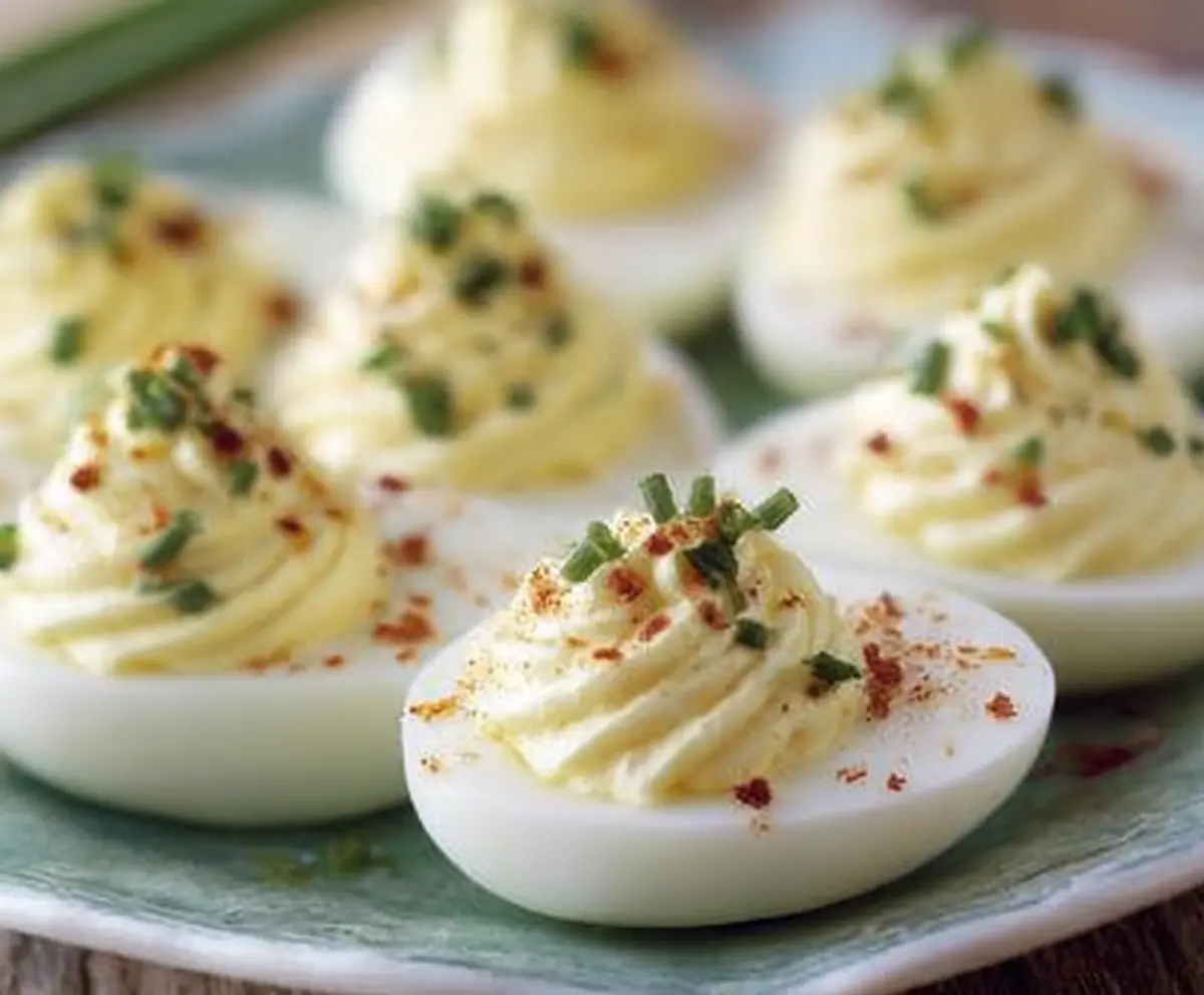This recipe takes about 25 minutes of total time. You’ll spend around 15 minutes preparing the eggs and the filling, and then about 10 minutes for cooling and garnishing. If you let the filled eggs chill in the fridge for a bit, the flavors will be even better!