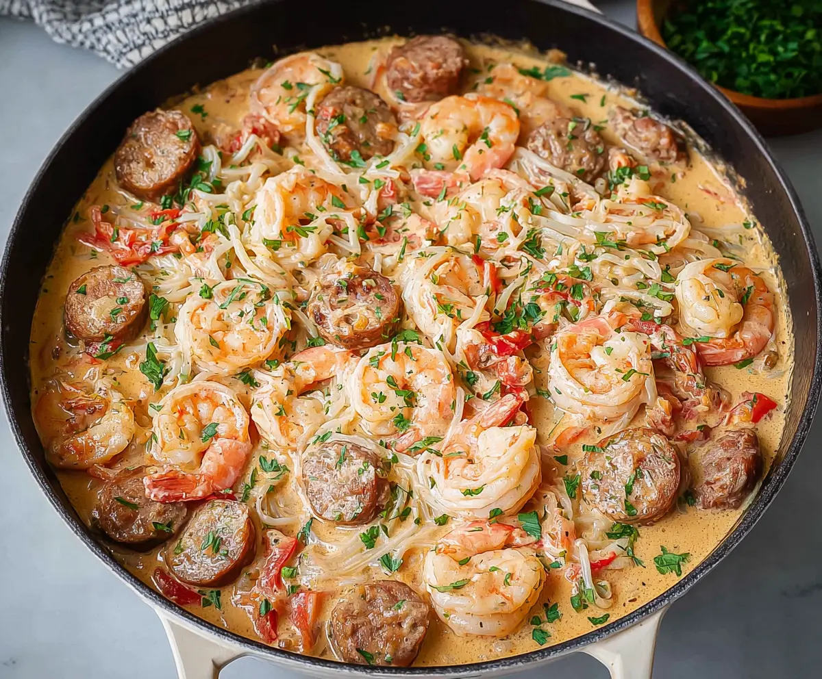 This creamy Cajun shrimp and sausage dish is a flavor explosion! With juicy shrimp and tasty sausage cooked in a rich, spicy sauce, it’s perfect for a cozy dinner.