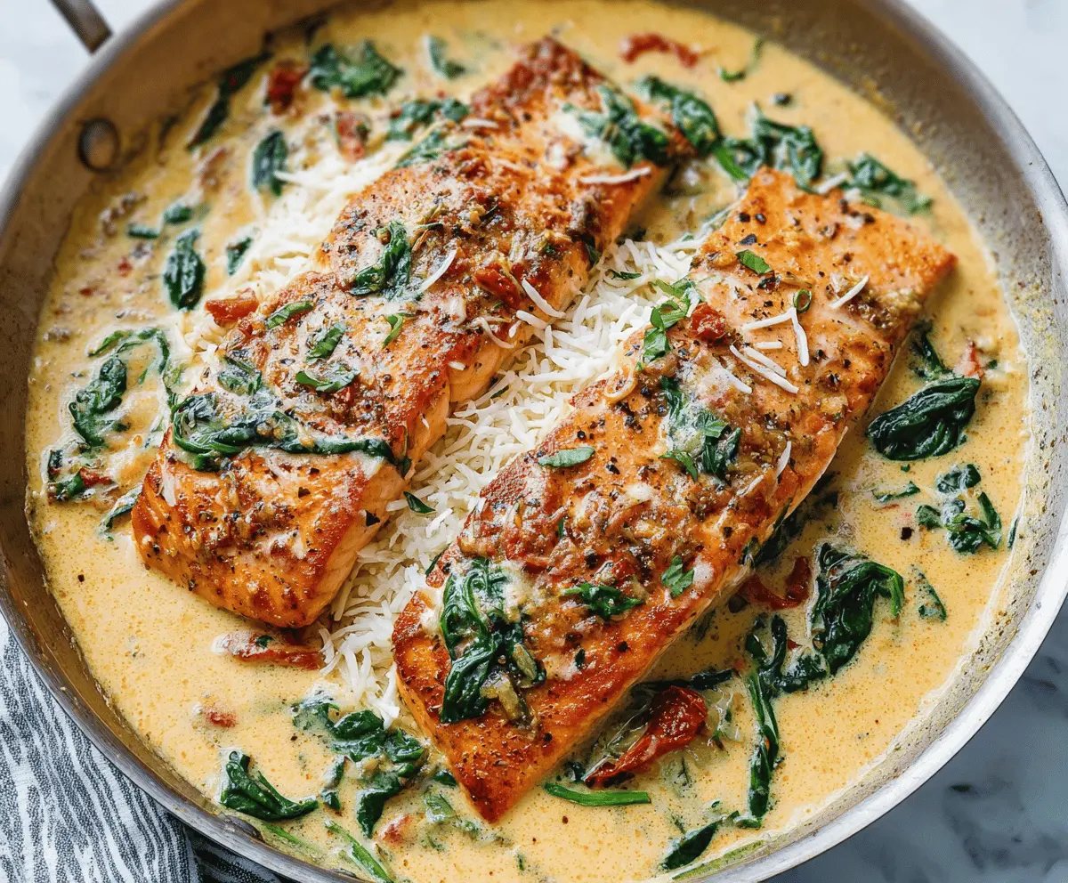 This Creamy Garlic Tuscan Salmon is rich and full of flavor! With tender salmon fillets cooked in a yummy creamy garlic sauce, it’s perfect for a cozy dinner.