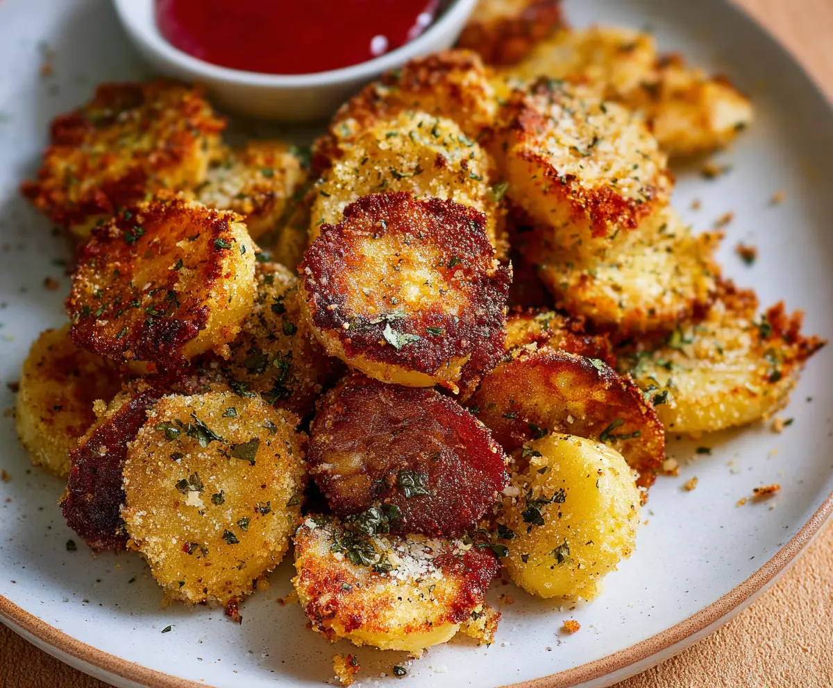 These crispy garlic parmesan crusted potatoes are a real treat! With a golden, crunchy layer on the outside and fluffy inside, they make a perfect side dish everyone will love.