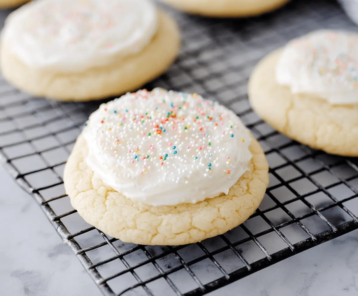 Delicious Crumbl Vanilla Sugar Cookies with a golden-brown edge and soft, sweet interior.
