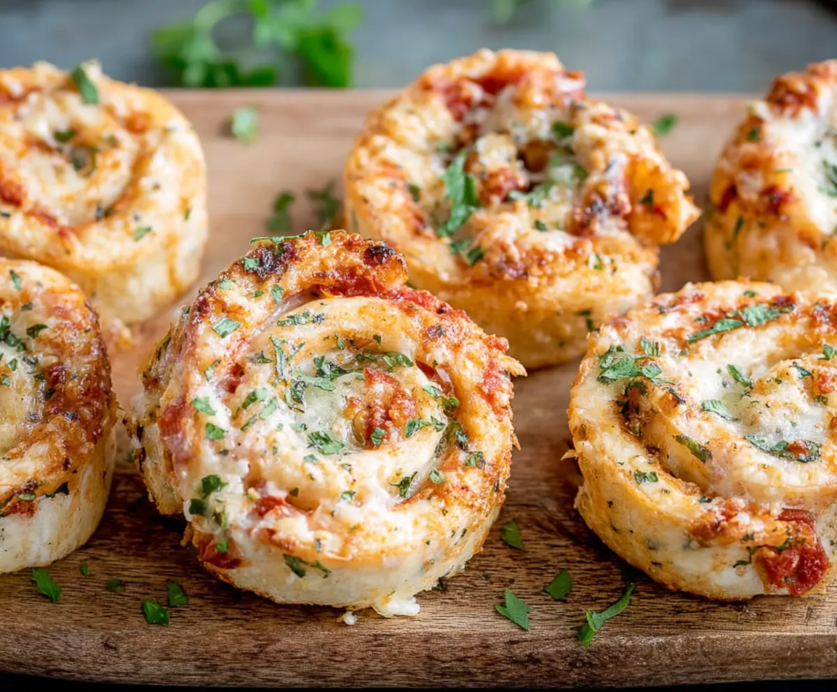 Enjoy your warm, cheesy, garlic-infused pinwheels with a delicious crispy outside and tender inside!