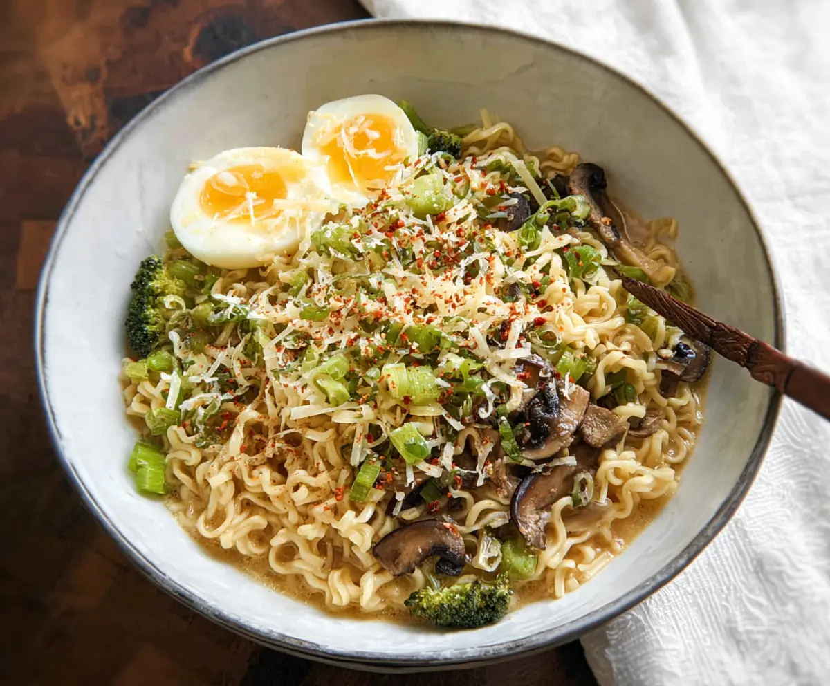 This Garlic Parmesan Ramen is a tasty twist on a classic favorite. Packed with garlic flavor and topped with rich Parmesan cheese, it’s quick and satisfying!