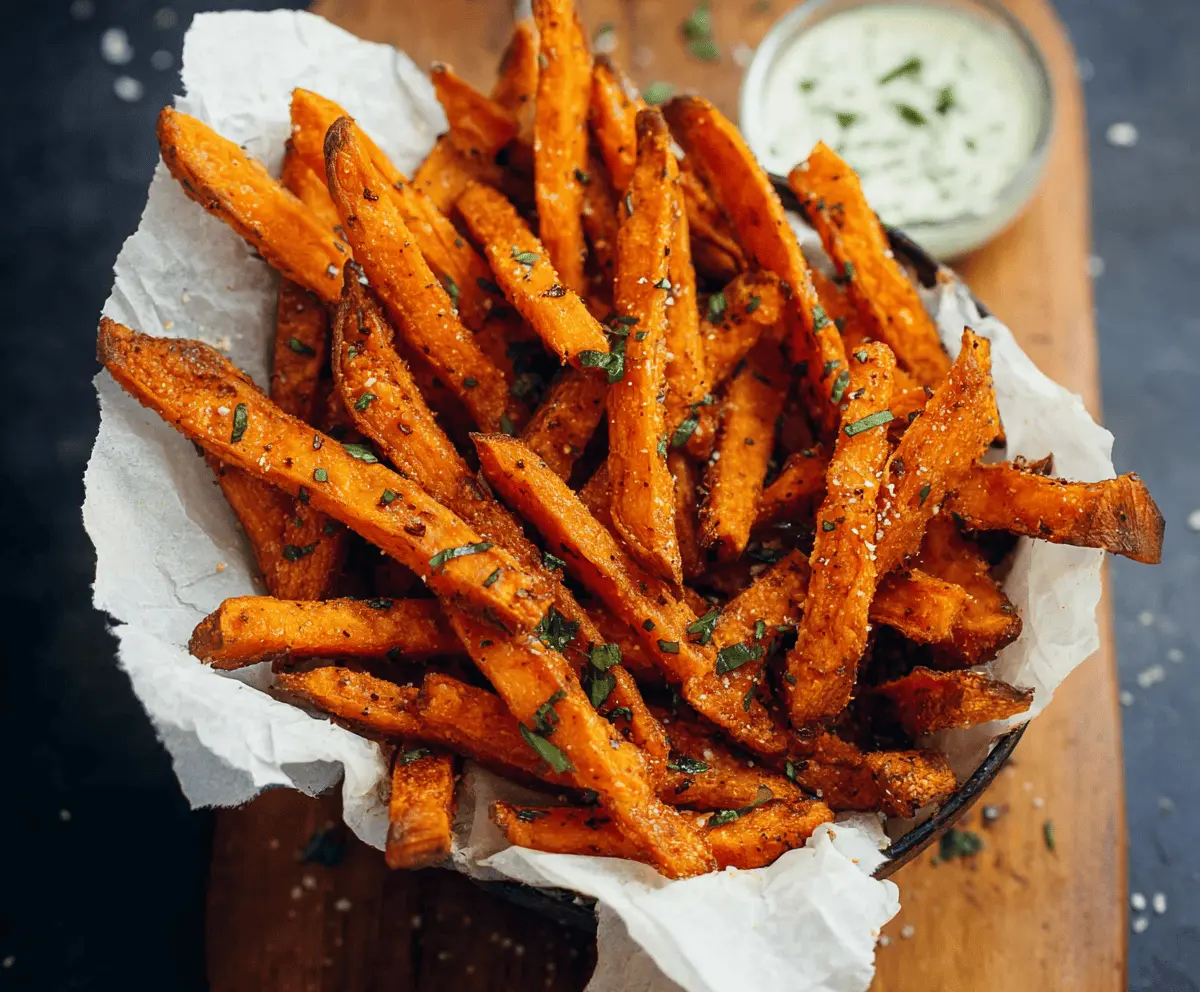 For extra crispy fries, soak the cut sweet potatoes in cold water for about 30 minutes before tossing them with oil and seasonings. This helps remove excess starch, resulting in a crunchier texture when baked!