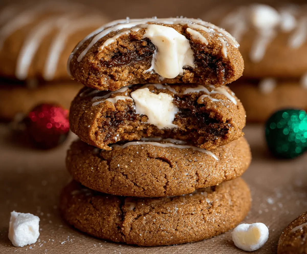Relish every bite of your Gingerbread Cheesecake Cookies, where the spiced cookie meets the creamy cheesecake surprise inside—a true holiday delight!