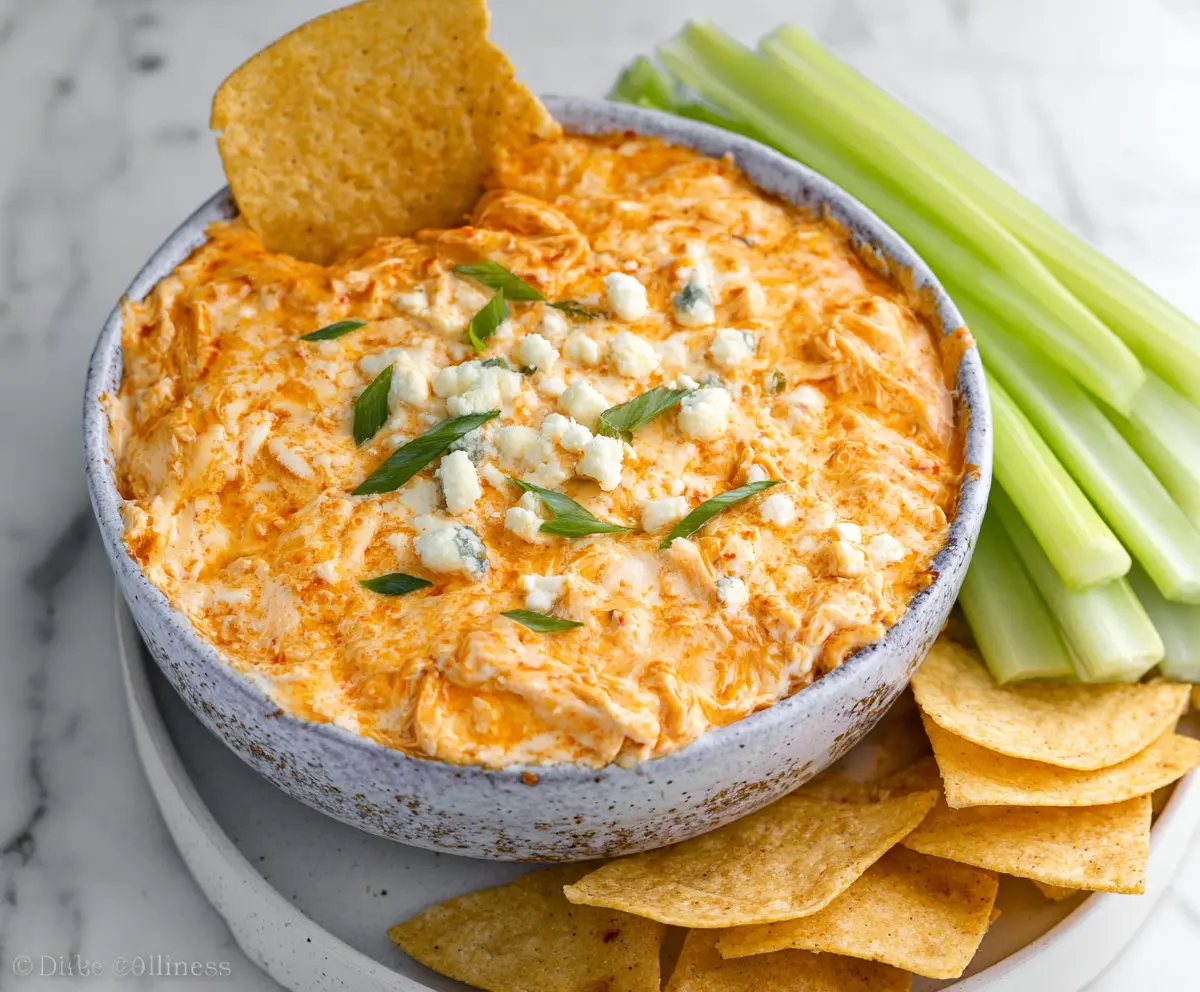This creamy Greek yogurt buffalo chicken dip packs a spicy kick with tender chicken and a tangy flavor. It’s perfect for parties or a cozy night in with friends!