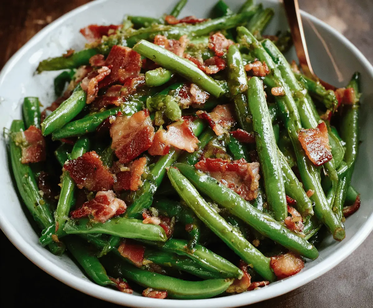 Delicious green beans cooked with crispy bacon for a flavorful side dish