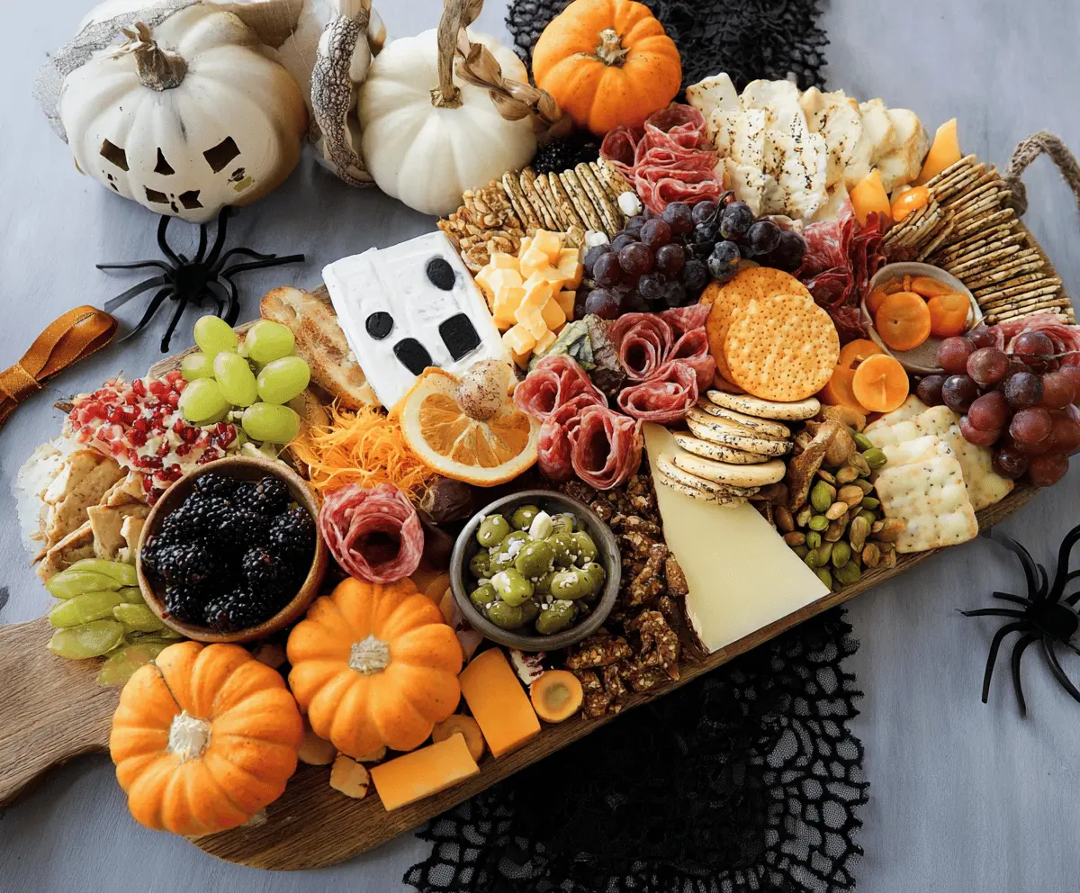 This Halloween Charcuterie Board is a fun way to celebrate the spooky season! It’s filled with tasty meats, cheeses, and creepy snacks like ghost-shaped crackers and pumpkin spice treats.