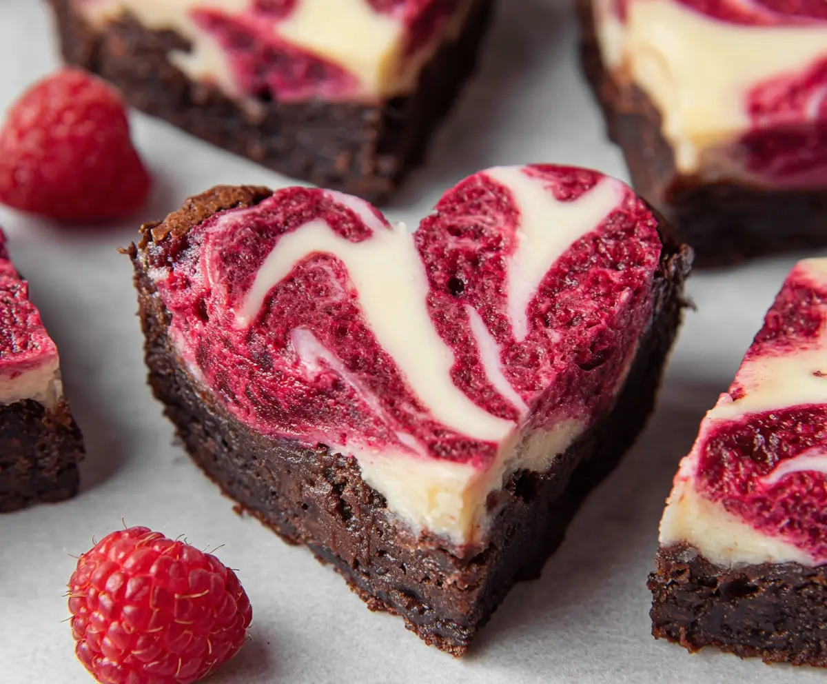 These heart-shaped raspberry cheesecake brownies are a sweet delight! With a rich brownie base and creamy raspberry cheesecake swirl, they look as good as they taste.