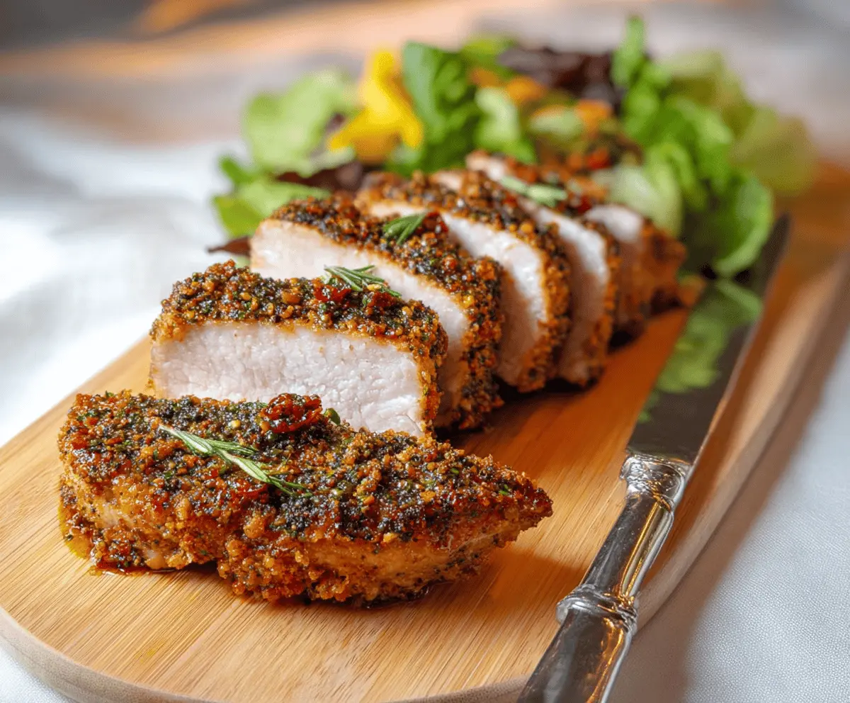 The key to a crispy herb crust lies in a few simple steps. First, patting the pork chops dry is essential—this removes moisture so the crust adheres and crisps up nicely.