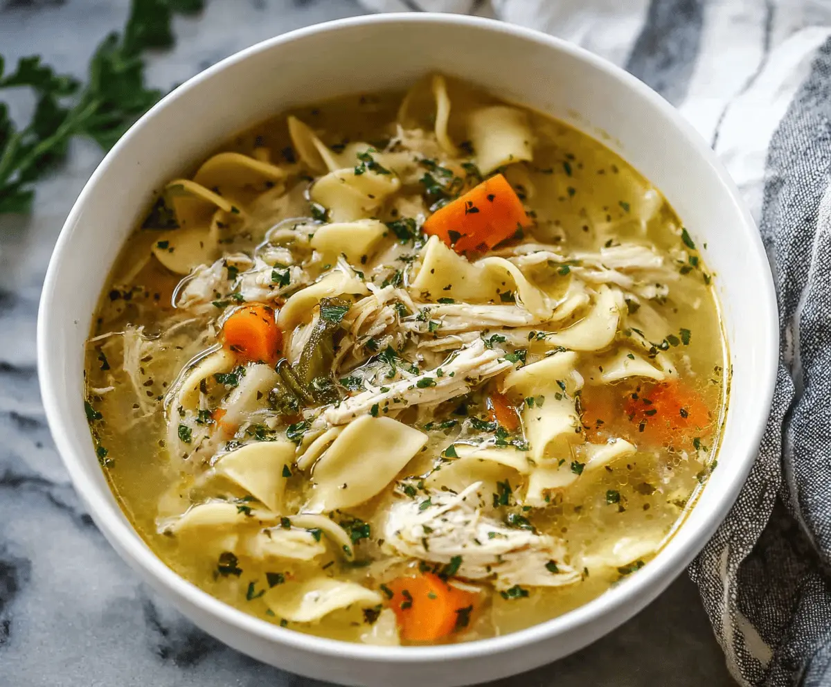 If you don’t have egg noodles, you can substitute with whole wheat noodles, pasta, or even rice! Just adjust the cooking time—pasta may take a little longer, while rice might cook faster. Add these after shredding the chicken, allowing enough time for them to become tender.