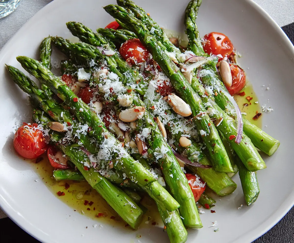 This Italian Asparagus Salad is fresh and colorful! With crunchy asparagus, juicy tomatoes, and a drizzle of tasty olive oil, it’s a perfect side dish.