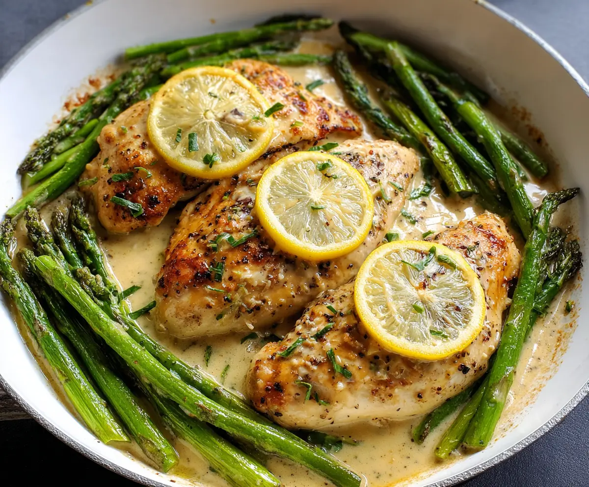 Before serving, sprinkle the remaining parsley on top for a fresh touch. Serve hot, spooning that creamy lemon sauce over the chicken and asparagus. Enjoy your delicious and vibrant meal!