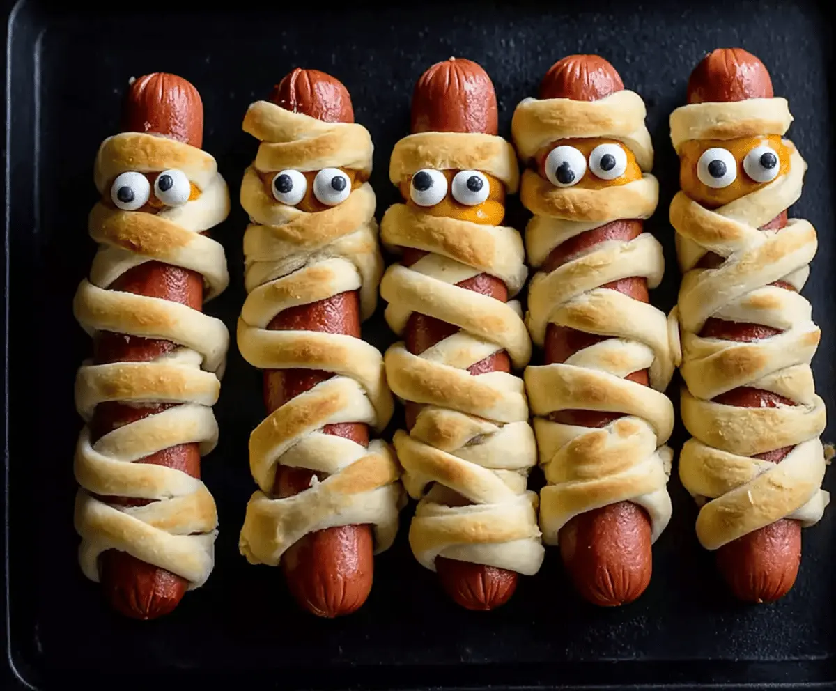 Mummy Hot Dogs are a fun twist on the classic hot dog! Wrapped in flaky dough, they look like little mummies ready for Halloween. Perfect for kids and parties!
