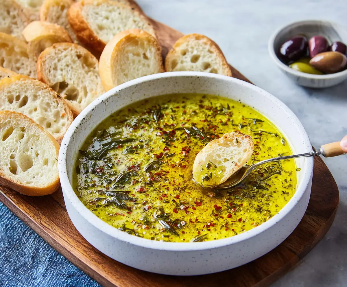 To enjoy, simply dip your bread slices into the olive oil mixture. It’s perfect for gatherings, game nights, or just as a delightful treat for yourself!