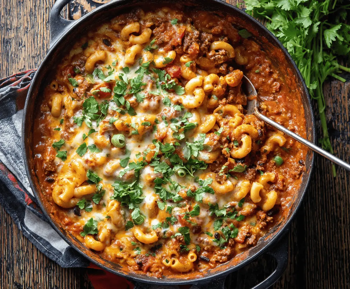 This One Pot Chili Mac and Cheese is a warm and cozy meal that combines the best of both worlds! Creamy cheese and hearty chili all in one pot—talk about a win!