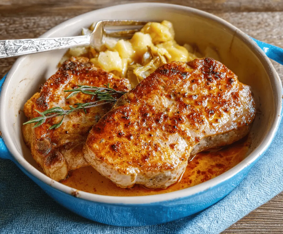 Transfer your skillet to the preheated oven (or place the seared chops in a baking dish if your skillet isn’t oven-safe). Bake for 10-15 minutes, or until the internal temperature of the pork reaches 145°F (63°C) for juicy, tender meat!
