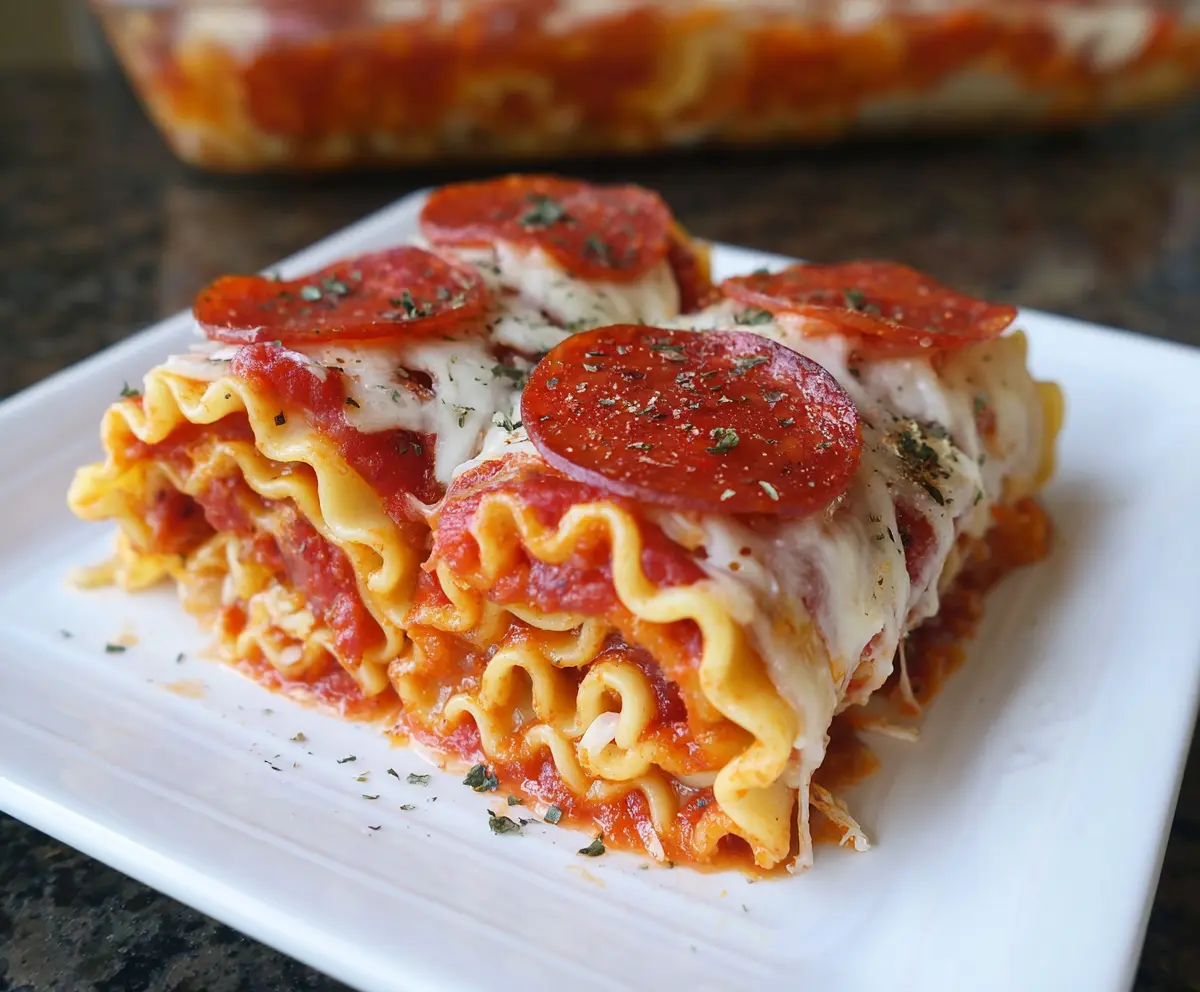 Your Pepperoni Pizza Lasagna Roll Ups are ready! Serve them warm, and enjoy this delightful blend of pizza flavors in a comforting lasagna form!