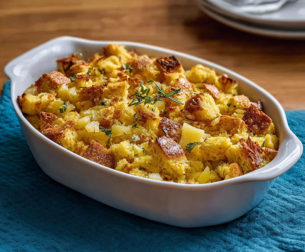 This Pineapple Stuffing is a yummy mix of sweet pineapple and soft bread that makes the perfect side dish. It has a lovely flavor that everyone will enjoy at dinner!