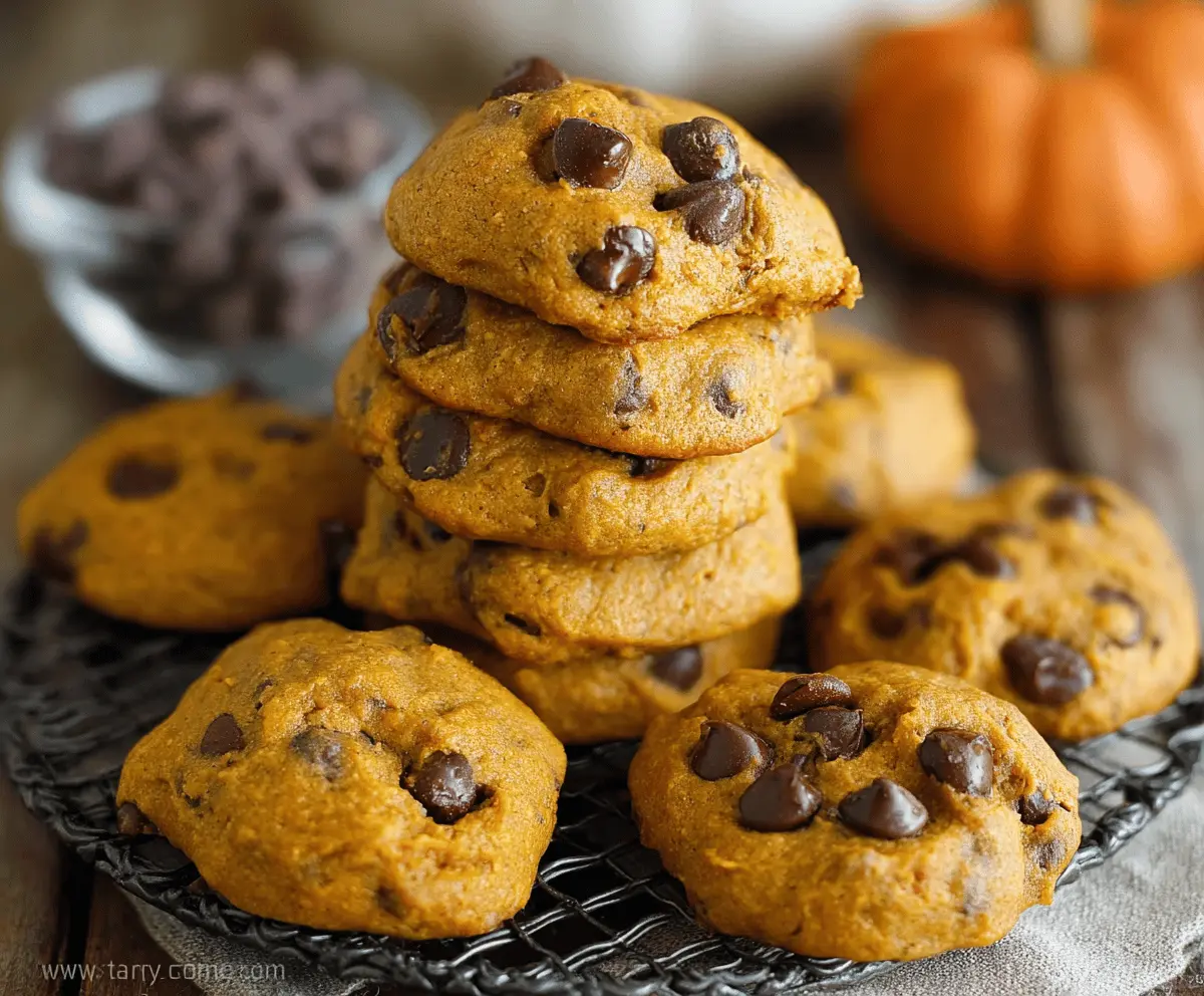 Delicious homemade pumpkin chocolate chip cookies with gooey chocolate chips and warm fall flavors, perfect for autumn baking.