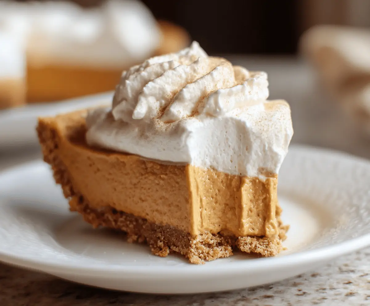 Once chilled, slice the pie and serve it cold. Enjoy this creamy, cool pumpkin delight with friends and family—it’s perfect for fall gatherings or any sweet cravings!
