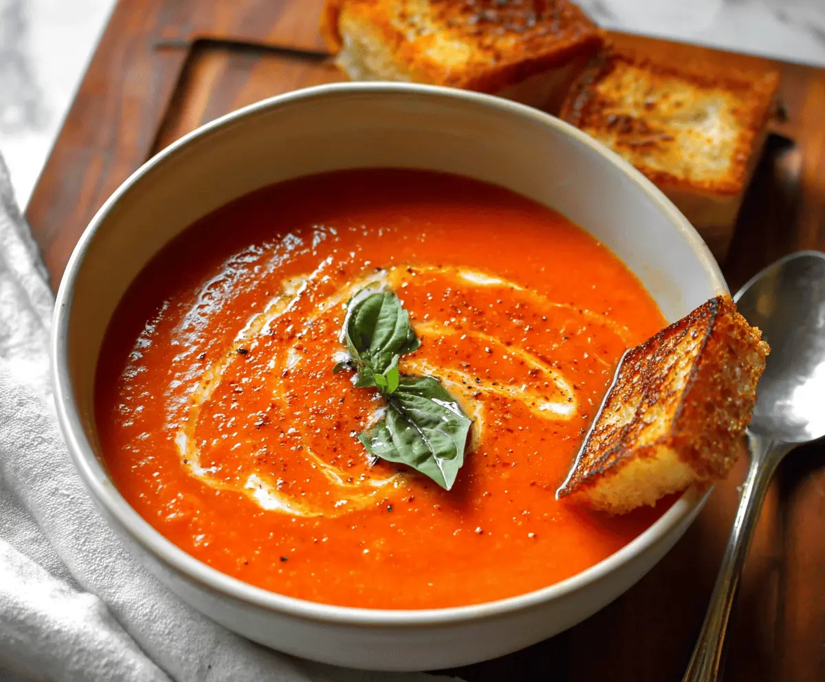 Dish out your warm soup into bowls, garnishing each one with fresh basil leaves and a sprinkle of black pepper. Serve alongside crispy toasted bread slices brushed with olive oil or butter for a satisfying meal. Enjoy every comforting bite!