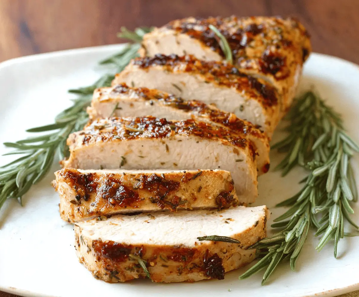 Finally, slice your turkey breast and serve it garnished with fresh rosemary sprigs. Enjoy it alongside your favorite side dishes like roasted vegetables or creamy mashed potatoes!