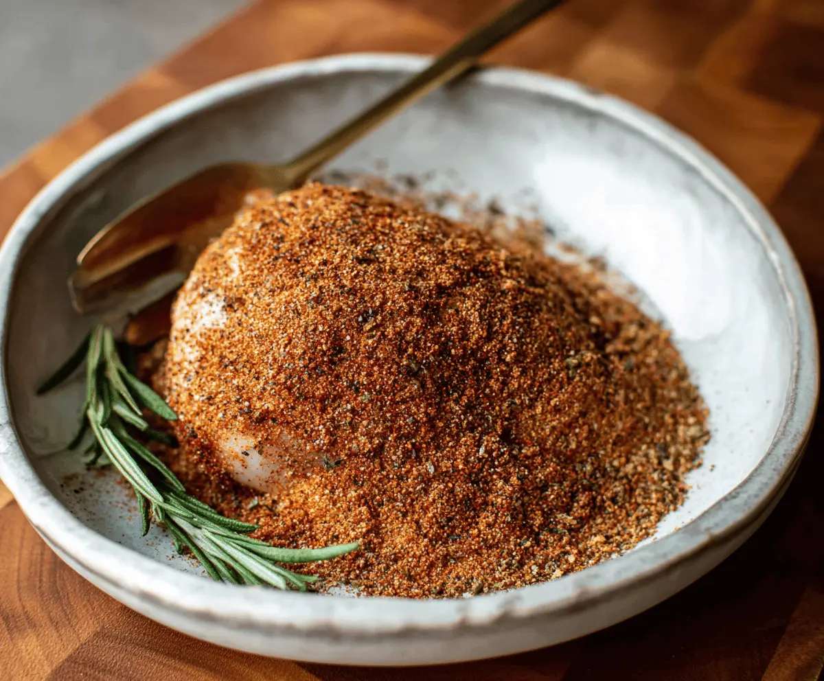 In a small bowl, mix together the paprika, kosher salt, black pepper, crushed rosemary, thyme, garlic powder, onion powder, and cayenne pepper (if you’re using it). Stir well until everything is blended nicely and the mixture looks uniform.