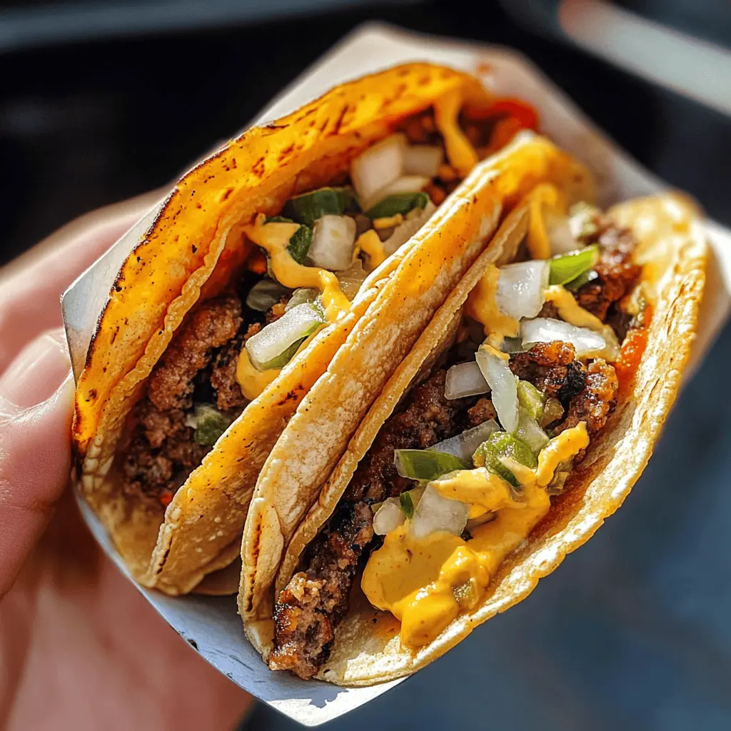 Fold the tortillas in half to hold everything together and serve them up while they’re warm. Enjoy your Smash Burger Tacos for a fun twist on a classic meal!